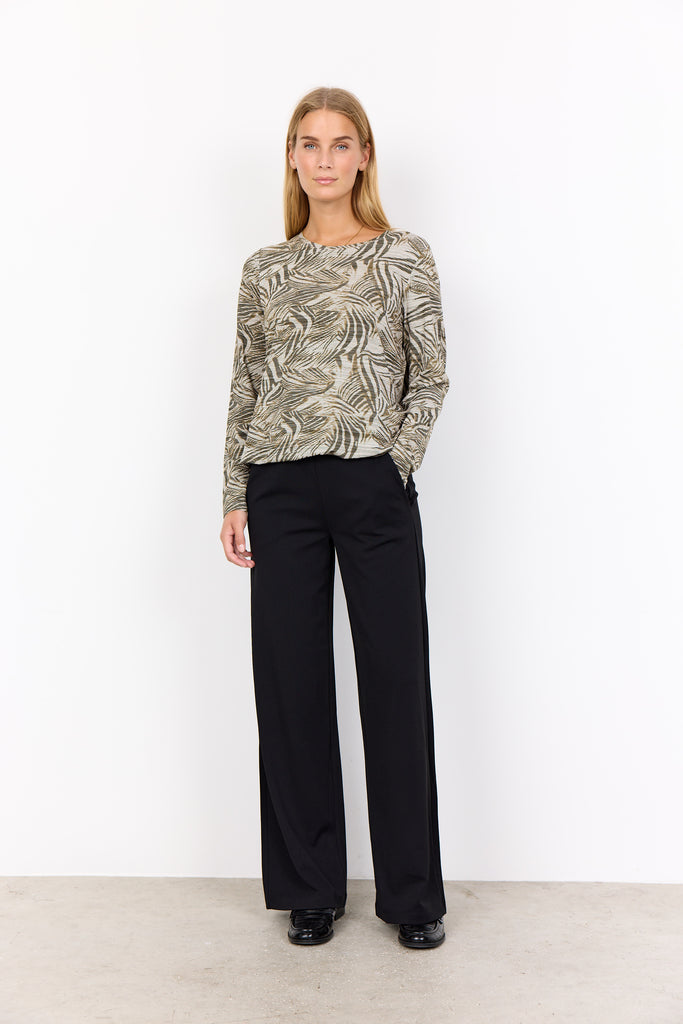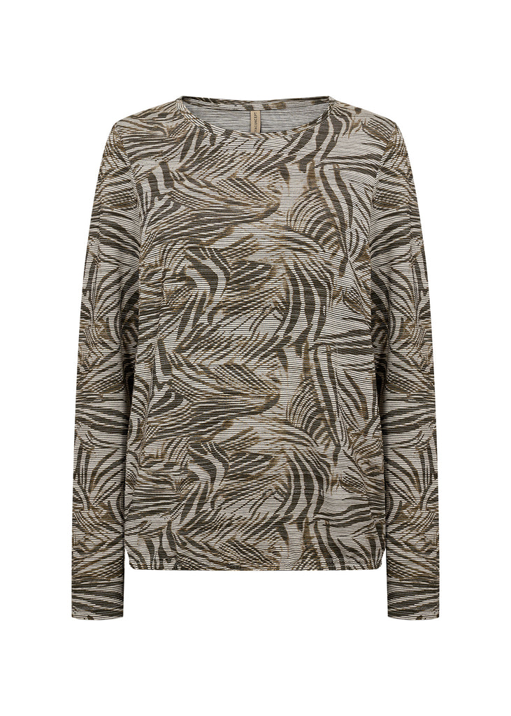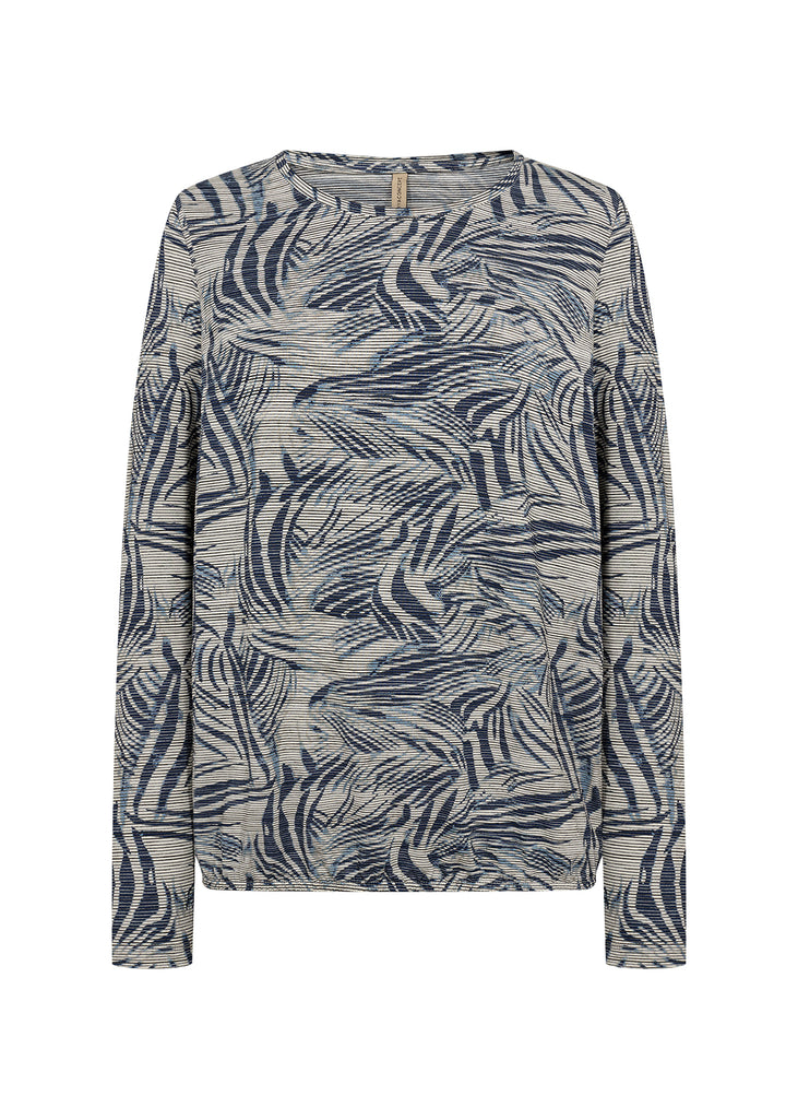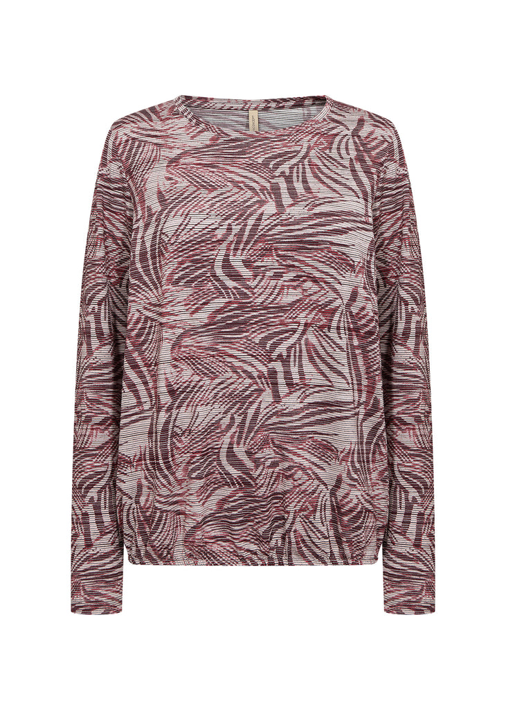 Bluse med rund halsudskæring, lange ærmer og et dynamisk abstrakt mønster. Sæt den sammen med skræddersyede bukser eller denim for et anderledes look