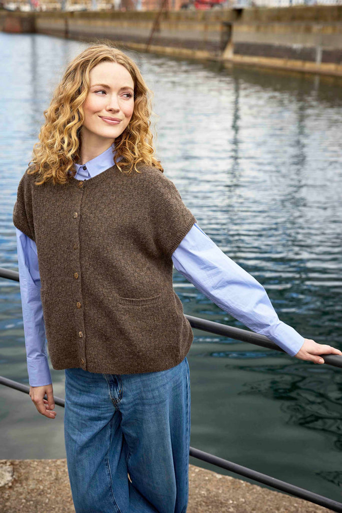 Smuk strik vest fra *mansted med fine træ knapper og 2 fine lommer.