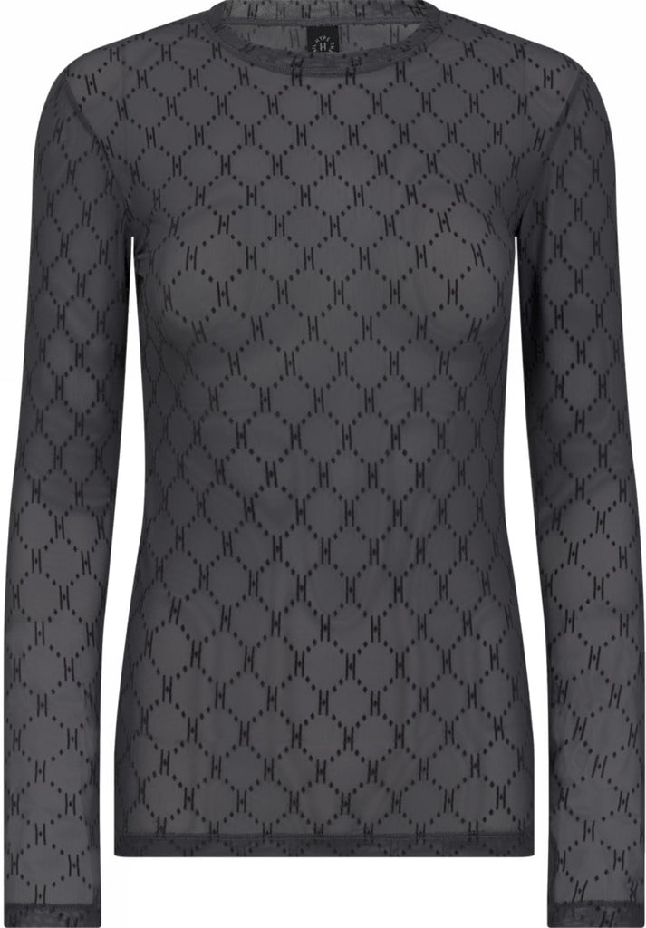 Smuk mesh bluse med H logo. Rund hals samt lang ærme.