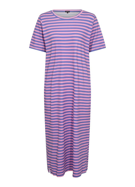 Lækker løstsiddende kjole fra Liberte. Kjolen er med t-shirt ærmer, og rund halsudskæring.