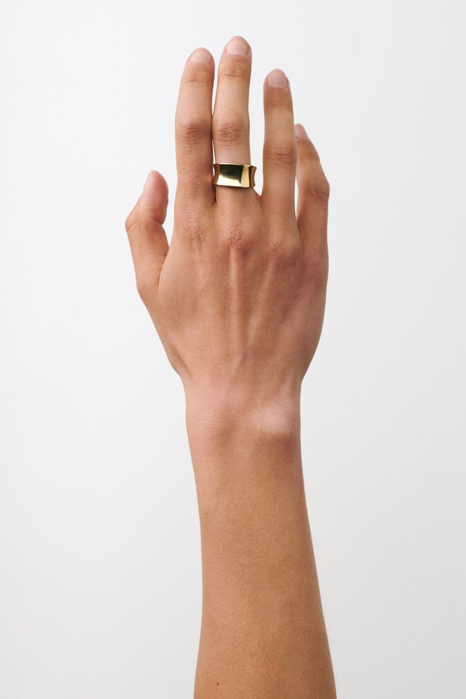 Reflection Ring er en smuk bred statementring. Ringen er designet med inspiration fra det klare vinterlys og den måde, det reflekteres på blanke overflader – sne og is.
