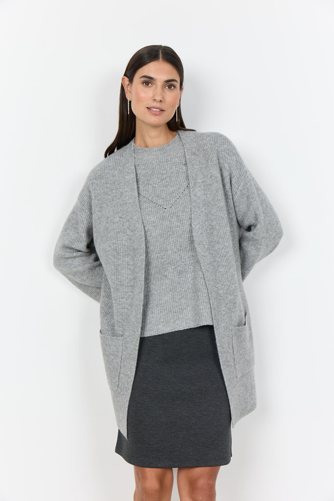 SC-AVALON 3 Cardigan er fremstillet af 52 % genbrugspolyester, 37 % genbrugsakryl, 9 % uld og 2 % elastan. Denne elegante cardigan har et åbent design foran, ribbet tekstur, to store lommer og en afslappet pasform. Sæt den sammen med skræddersyede bukser for et sofistikeret look eller jeans til en afslappet udflugt.