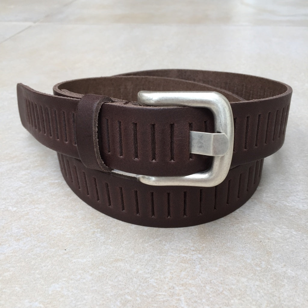 Lækker skind bælte fra ThreeM med en masse huller, derved nem at rustere.