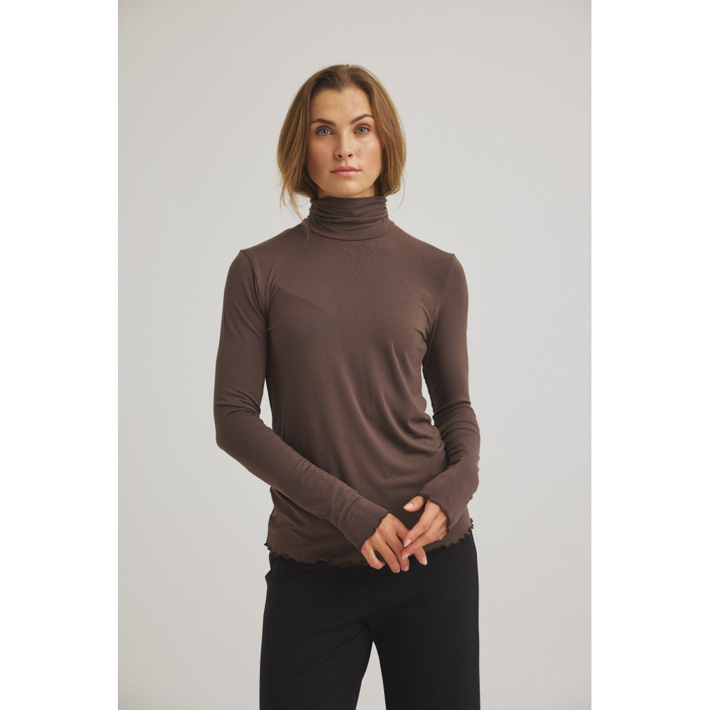 Den bløde bambus kvalitet og let bølgede afslutninger ved ærmer og bund giver et feminint og moderne udtryk.