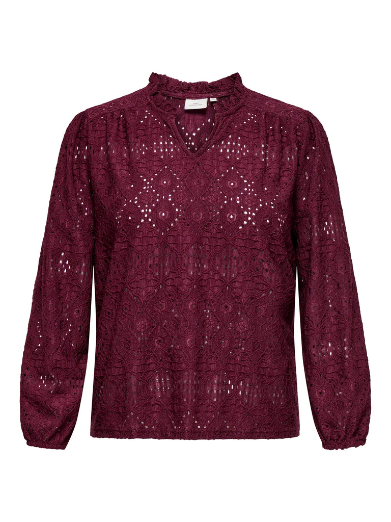 Smuk bluse med læange ærmer, hulmøster og v-neck.