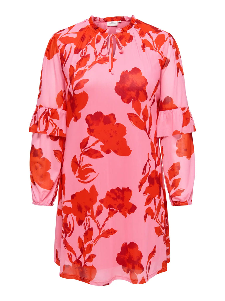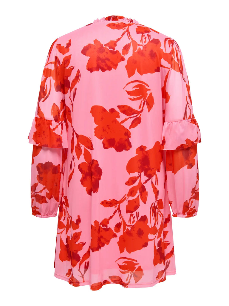 Smuk kjole/tunika fra ONLYCARMAKOM i et smukt rødt print.