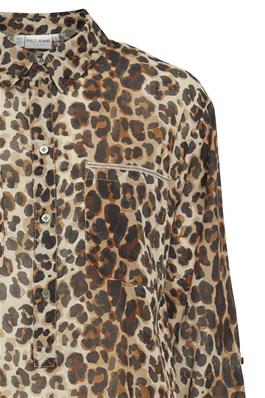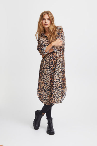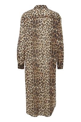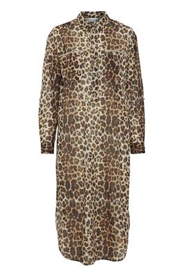 Smuk kjole i leo-print. Med fine "sølv" detalje på lommerne