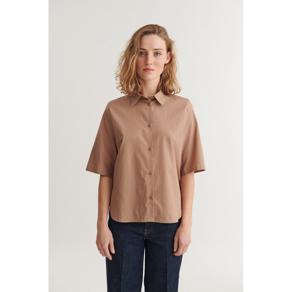 Smuk skjorte bluse med kort ærme fra basicapparel.