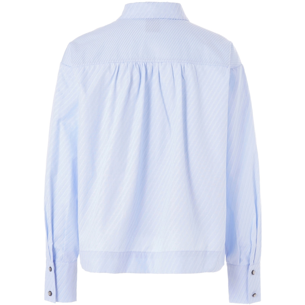 Stribet skjorte fra LUXZUZ // ONE TWO. Modellen er designet med klassisk krave, skjult knaplukning foran, en brystlomme i venstre side og manchetter ved ærmerne. Skjorten har et feminint fit med let rynk bagpå, som giver et elegant fald. En stilren og tidløs skjorte med fokus på fine detaljer og et enkelt udtryk.