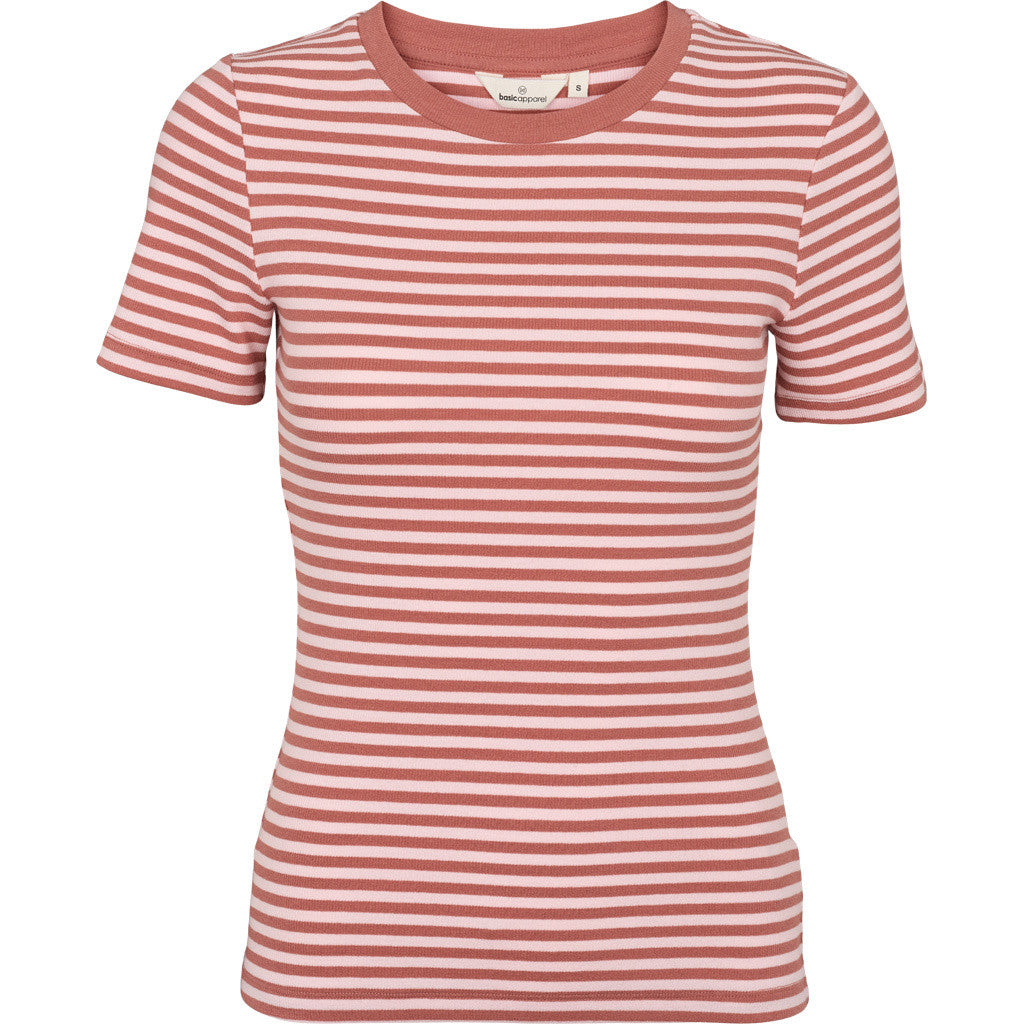 Lækker t-shirt i strib fra basicapparel i 96% bomuld og 4% elastan