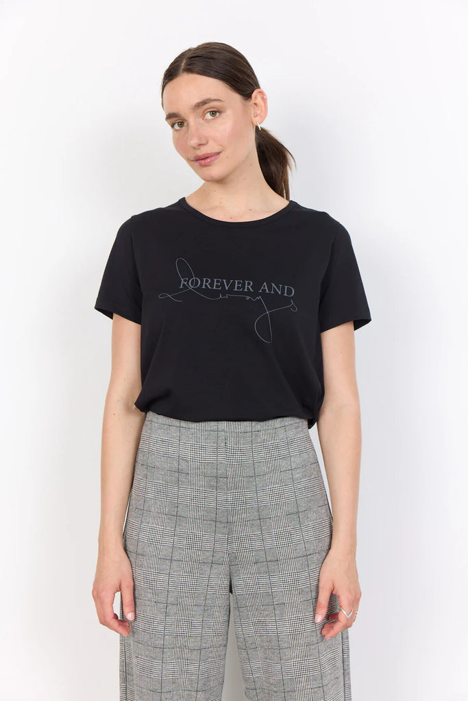 T-shirten har en klassisk rund hals og et fedt print foran.