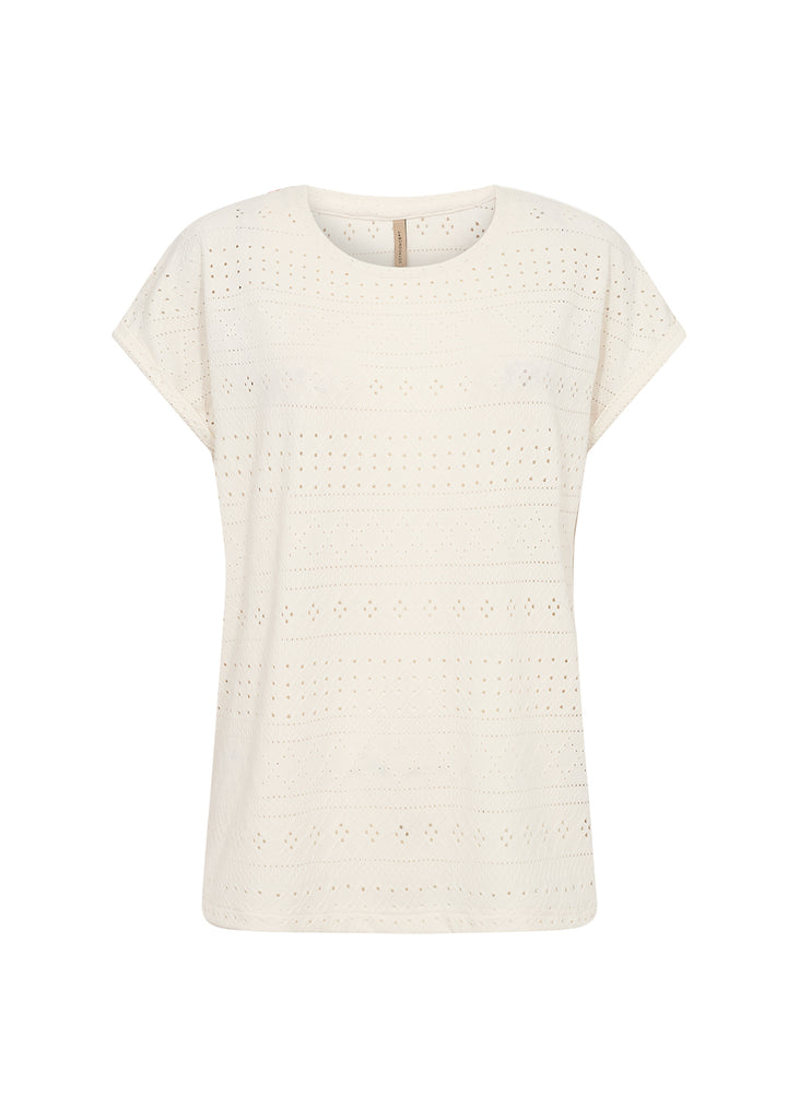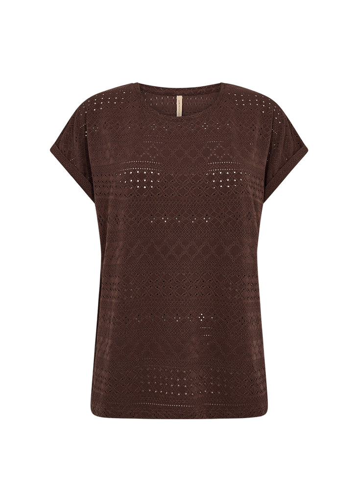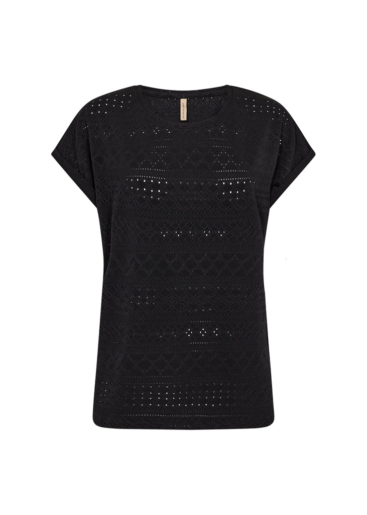 SC-SATINE 2 T-shirt er fremstillet af 94% genbrugspolyester og 6% elastan. Den har en rund halsudskæring og korte ærmer med et indviklet hulmønster i hele stoffet. Sæt den sammen med jeans eller en nederdel for et enkelt og stilfuldt look.
