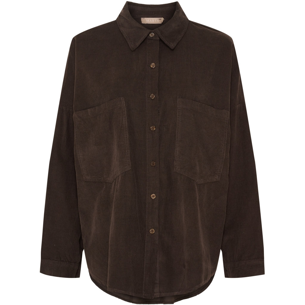 Klassisk og fin skjorte fra Marta Du Château i baby fløjl. Skjorten har gennemgående knapper, to brystlommer og krave. Den er super alsidig og kan både styles med et par jeans og bukser fra samme serie.