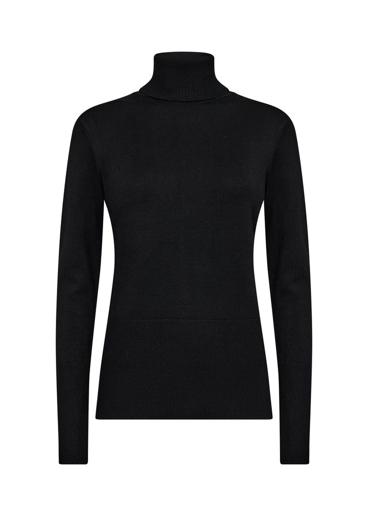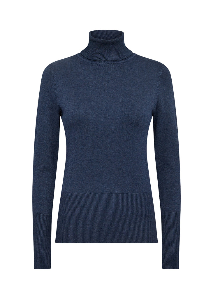 Klassisk turtleneck pullover i en viskose og nylon blandingskvalitet. Pulloveren er i et ribbet strikket materiale, har lange ærmer og en stram pasform. Dette er en "must have" style og den er perfekt under en vest eller med en blazer.
