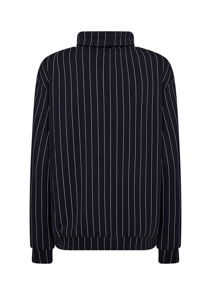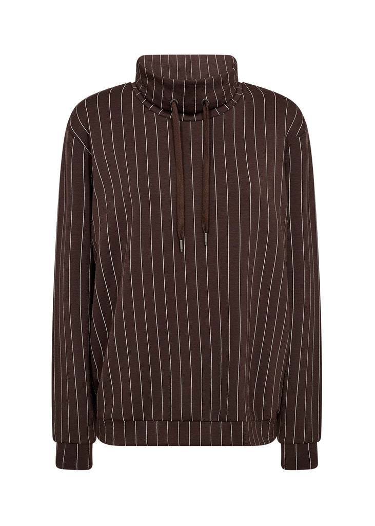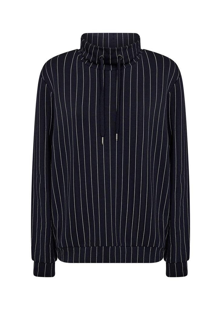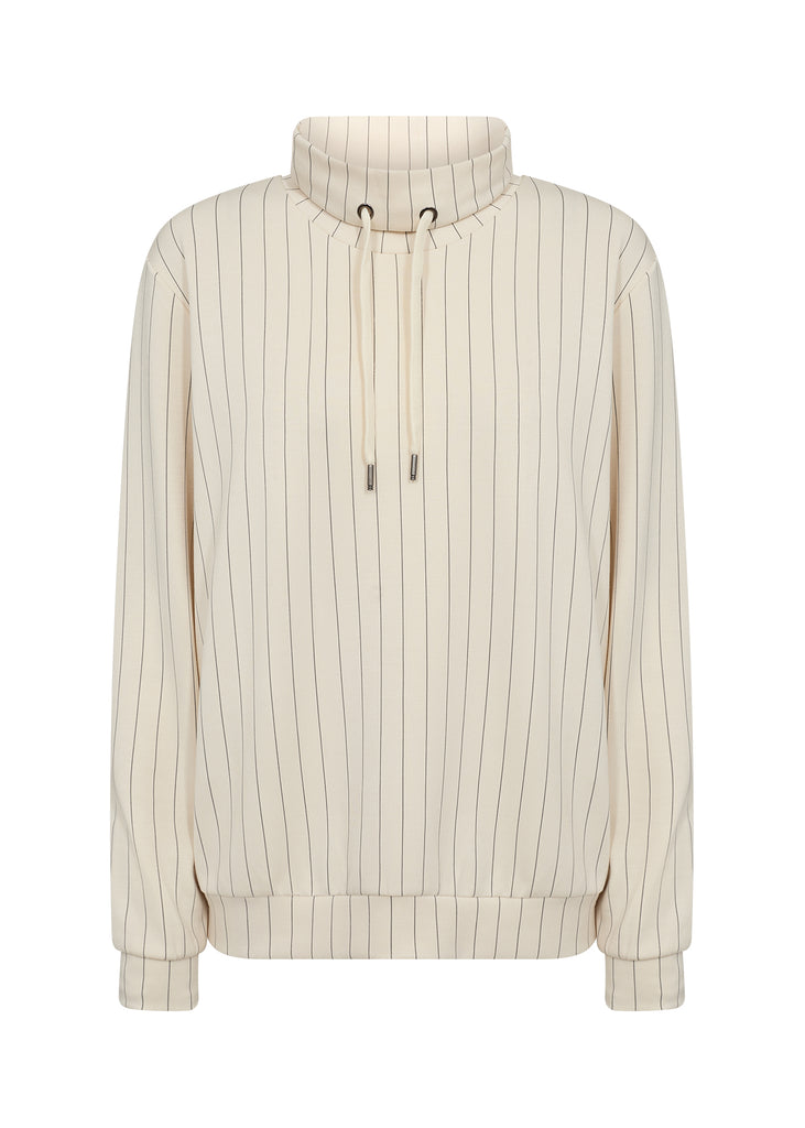 Behagelig sweatshirt med striber, høj hals, bindebånd, lange ærmer, og en løs pasform