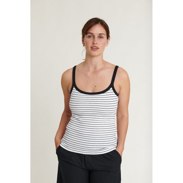 Opgrader din  garderobe med vores nye Ludmilla Strap Top. Den er lavet af 96% økologisk bomuld og 4% elastan, hvilket gør den let og åndbar at have på.