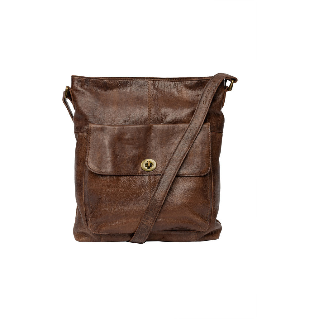 Lækker skindtaske med lomme foran. Lukkes med lynlås og har justbar crossover.