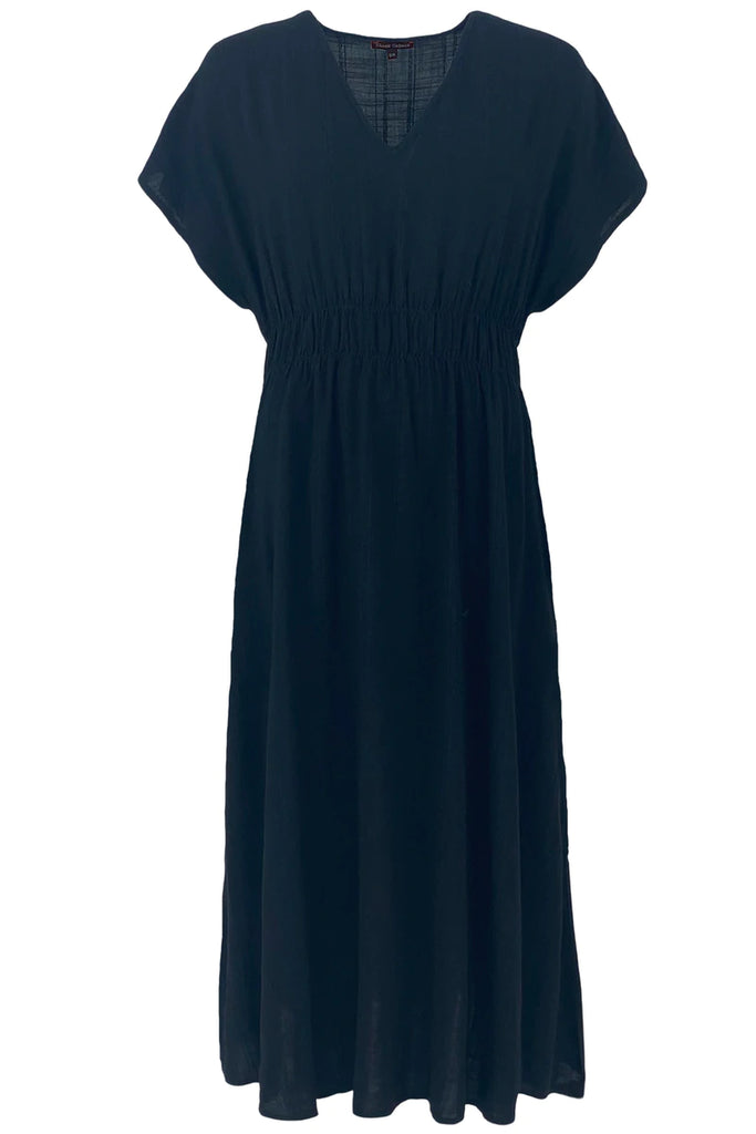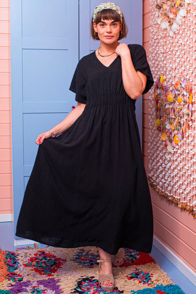 Skøn kjole fra Black Colour med v-hals. Isobel kjolen er designet med elastik i taljen, en flot dyb halsudskæring, samt med masser af vidde i skørtet og lommer i siden.