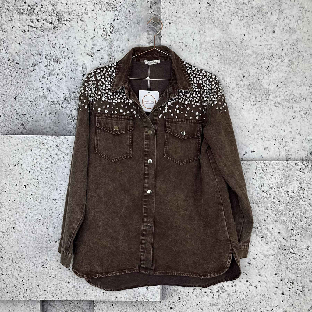 Cool skjorte fra Cabana Living i en smuk mørk brun denim og med fine detaljer på skulderne.