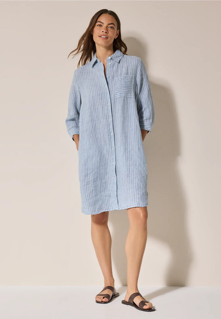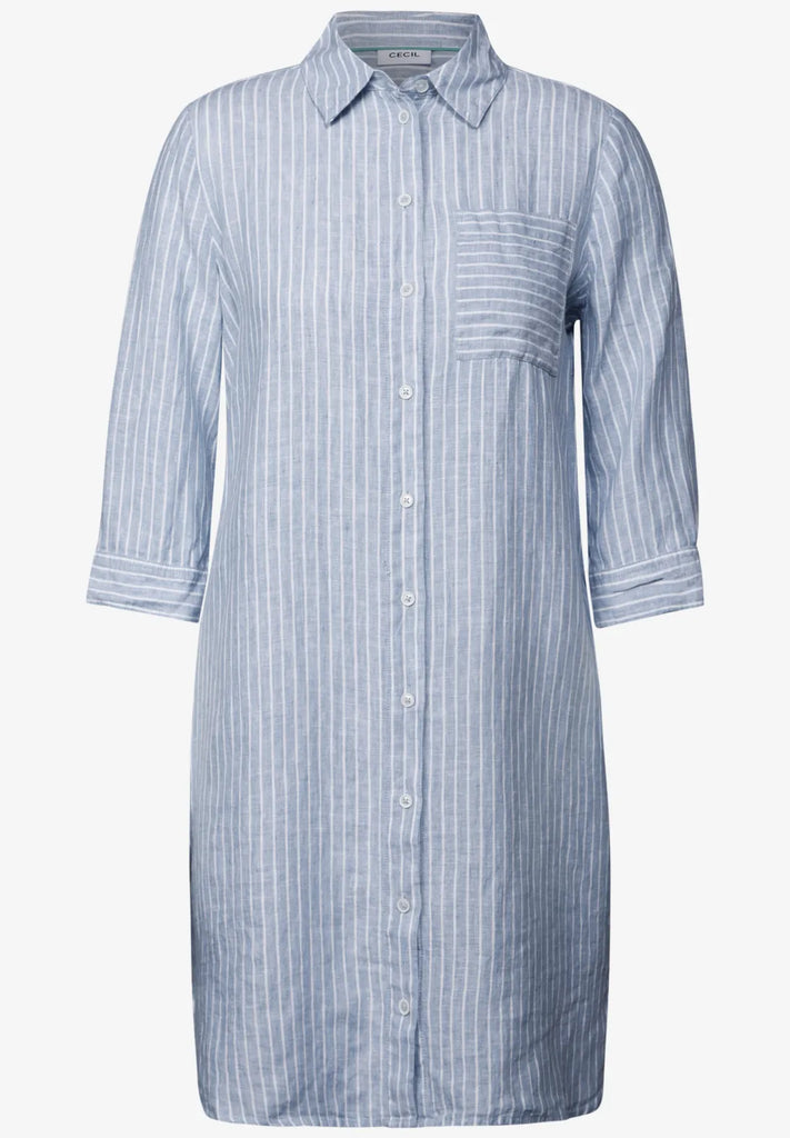 Smuk kjole i hør fra Cecil med en hvid strib.