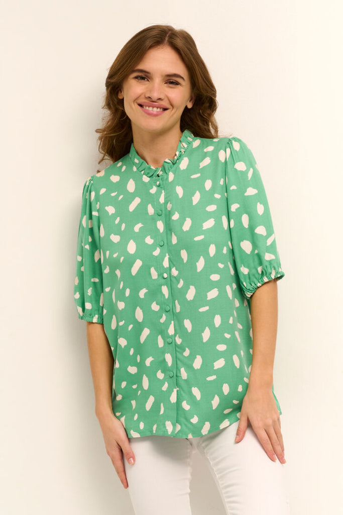 Smuk skjorte bluse fra Culture i en stærk grøn farver med hvide bomber.