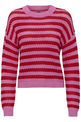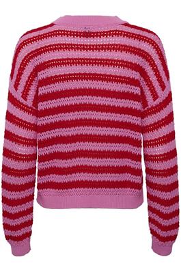 Lækker kort strik med hulmønster i pink/lyserød stribet.