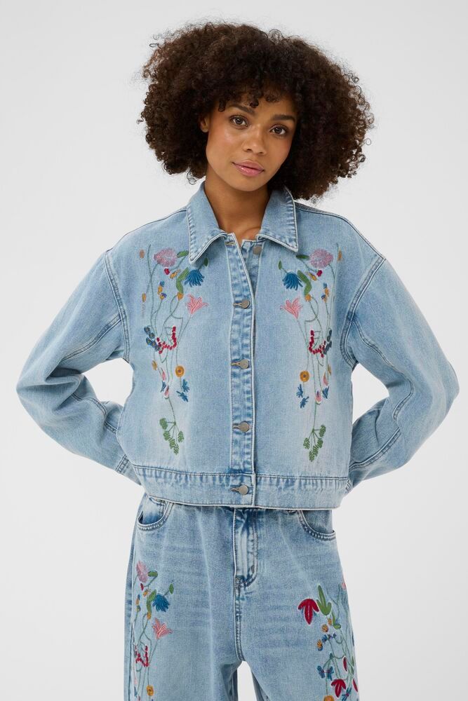 Cool denim jakke med broderi.