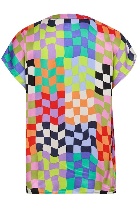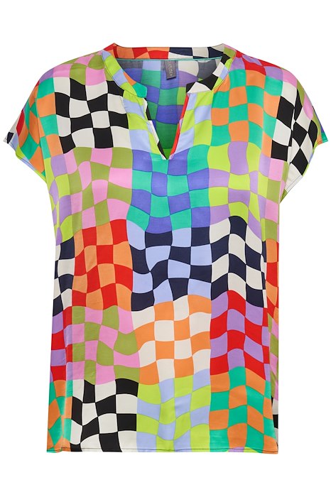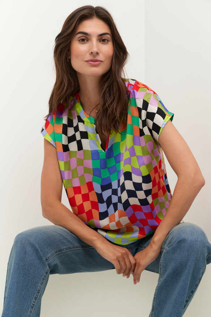 Skøn bluse med kort ærme fra CULTURE i et væld af farver i tern.
