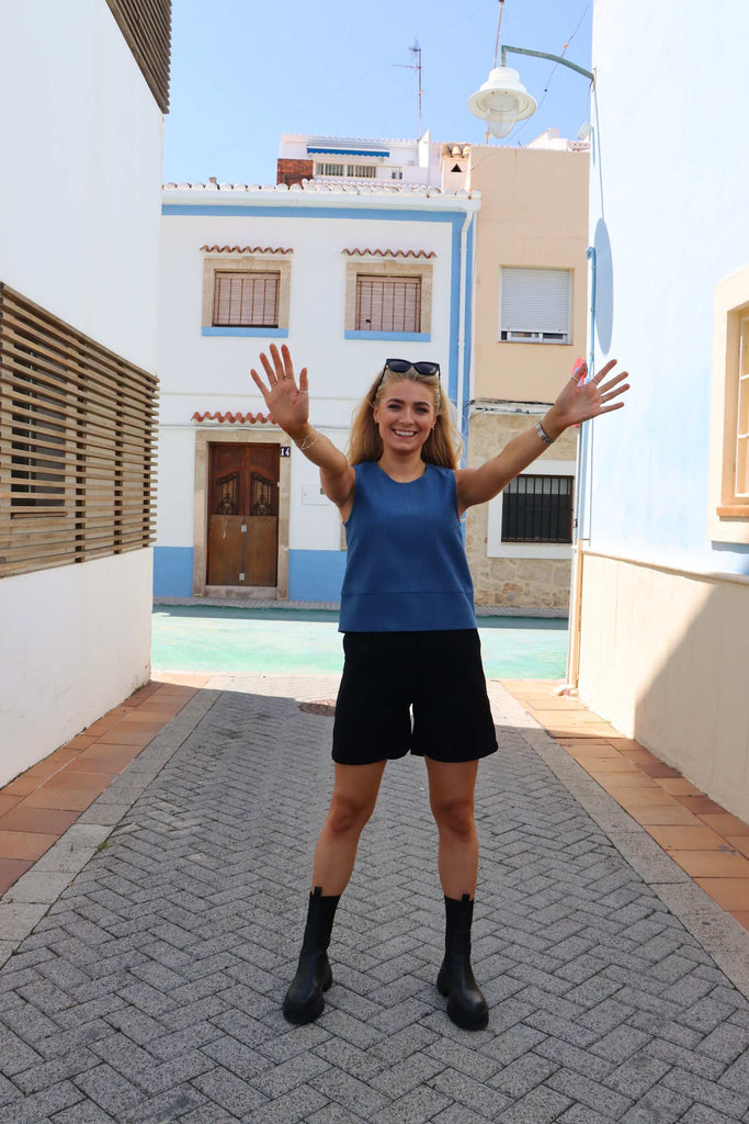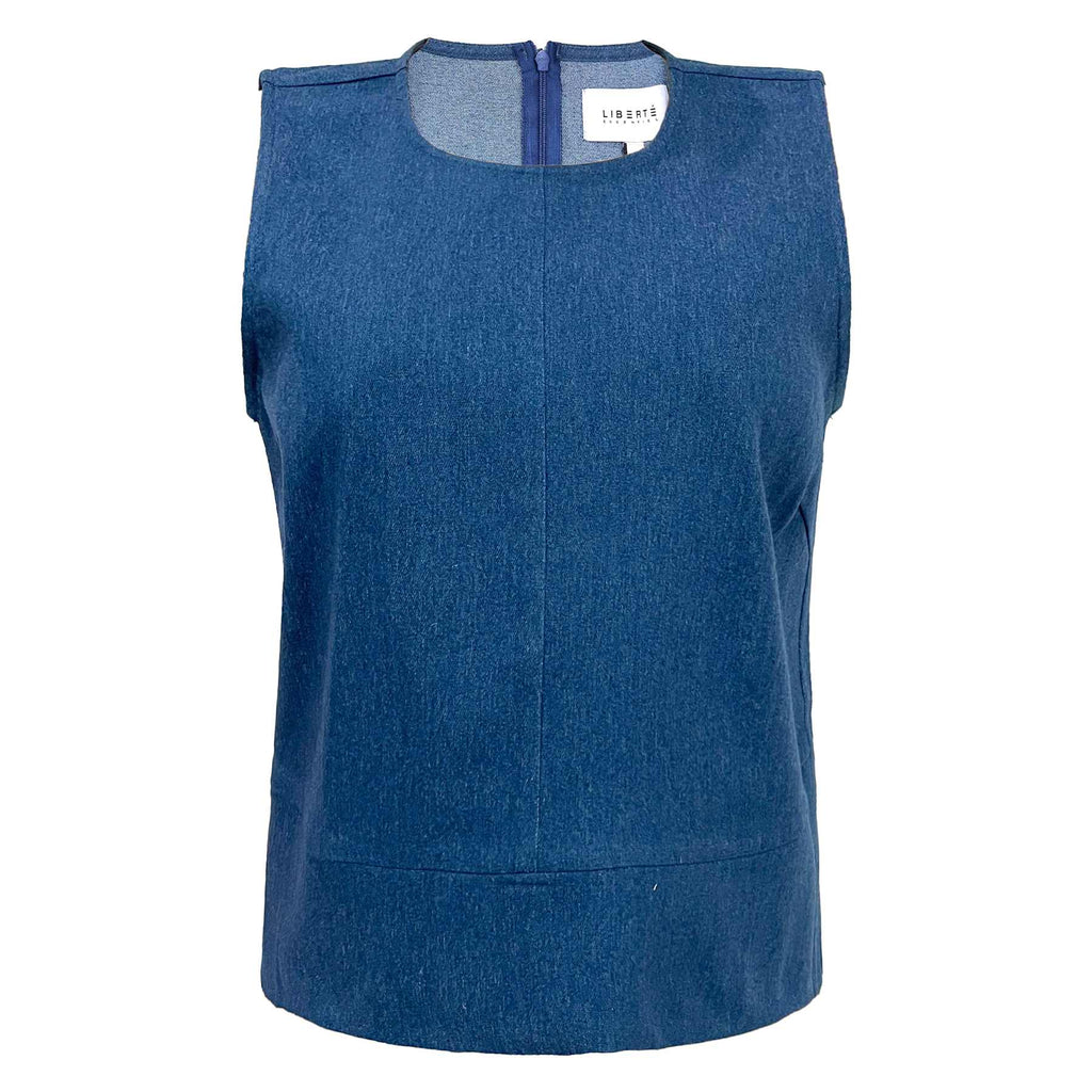 Lækker blød top i denim look fra Liberté. Lukkes med lynlås i ryggen.