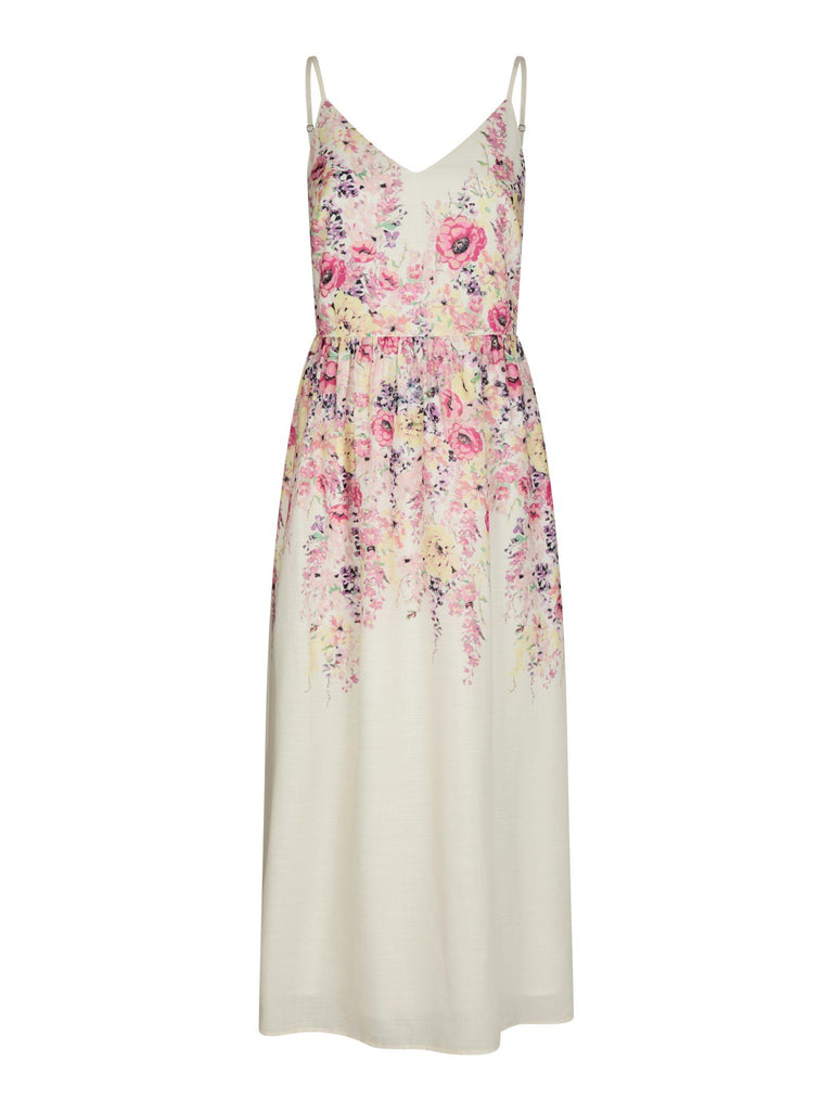 Maxi-længde kjole i et smukt blomsterprint. Kjolen har en afslappet, men feminin pasform med stropper. Modellen er 176 cm høj og bærer størrelse 36.