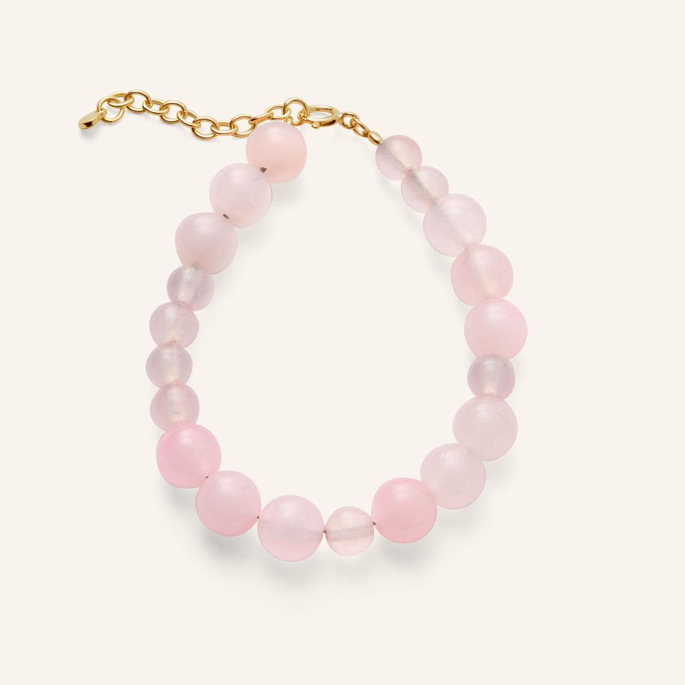 Smukt armbånd med rosenkvarts i lyserøde nuancer.