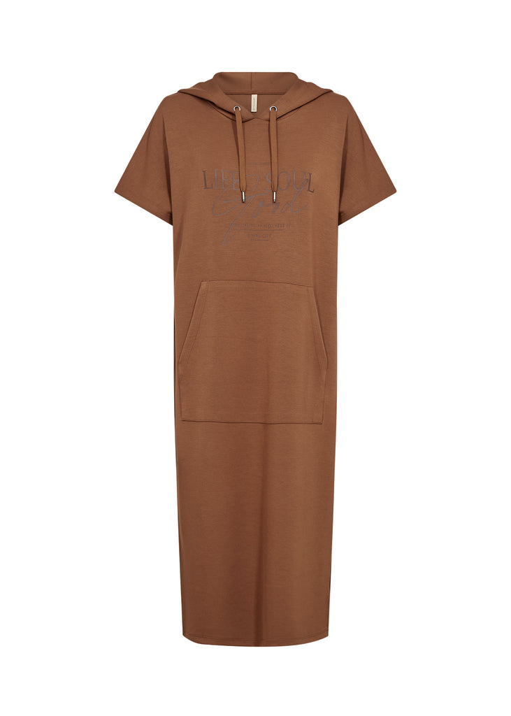Lækker blød kjole fra Soya med kort ærmer og hætte.