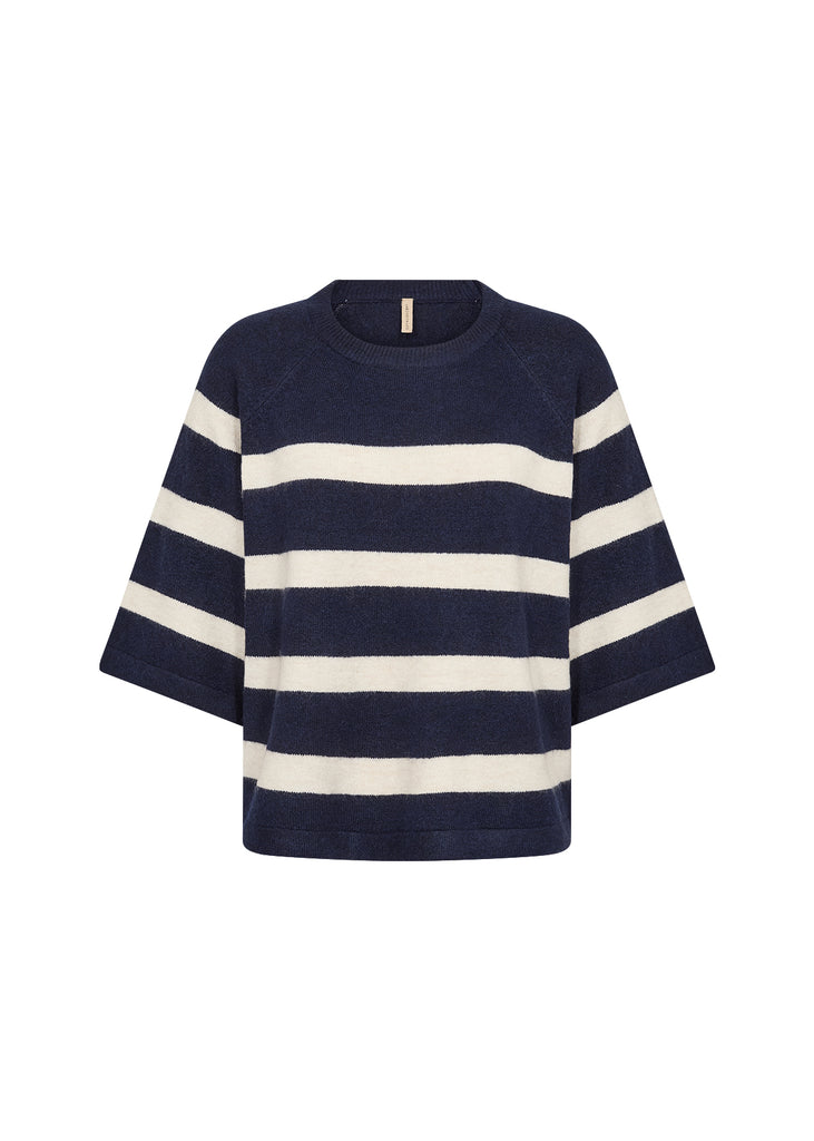 SC-ORLEAN STRIPE 5 Pullover er fremstillet af 74 % akryl, 24 % polyester og 2 % elastan. Den har en klassisk rund hals med brede vandrette striber og trekvart ærmer for et elegant look. Sæt den sammen med skræddersyede bukser eller dine yndlingsjeans for en unik stil.