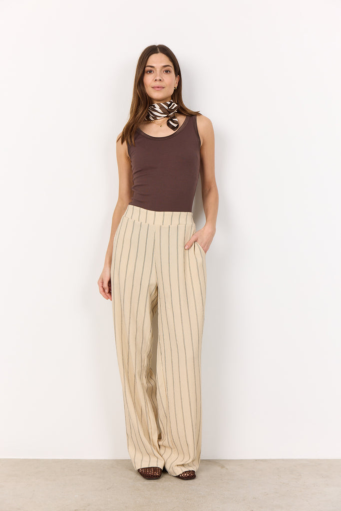 SC-RAJAN 4 Pants er fremstillet af 88 % genbrugspolyester, 10 % LENZING™ ECOVERO™-viskose og 2 % elastan, som giver en behagelig pasform. Bukserne er skræddersyet med læg foran, har et lodret stribet mønster og er designet med en almindelig pasform, der giver både stil og funktion. De kan kombineres med en række forskellige toppe for et smart og afslappet look, der passer til mange lejligheder.