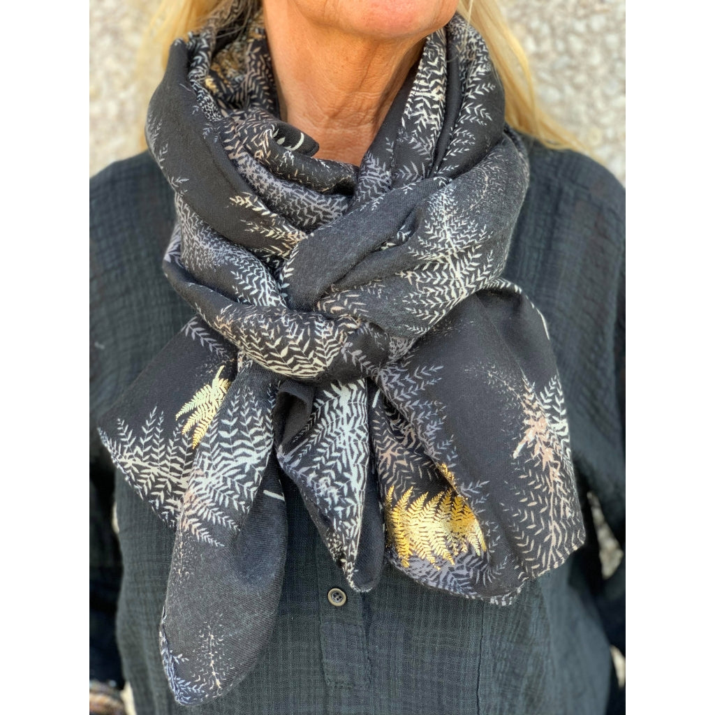Smukt tørklæde fra Three M med smukke guld detaljer.